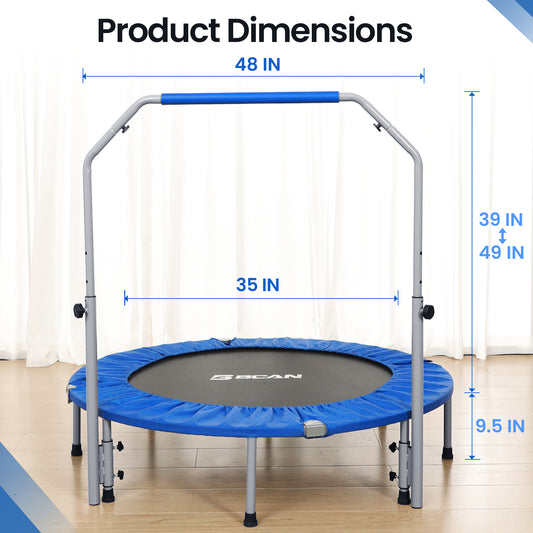 48-Blue Foldable Mini Trampoline with Adjustable Foam Handle