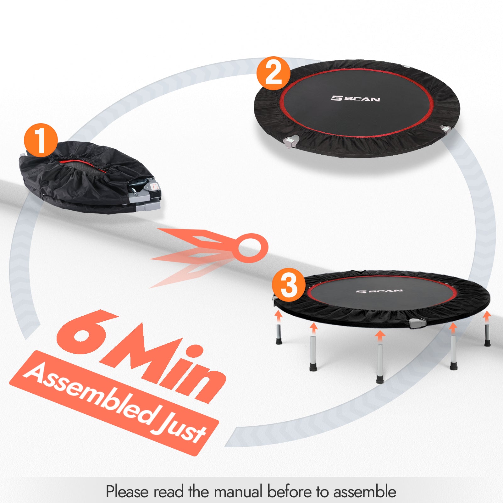 - 【Portable Trampoline】With unique frame construct, folded size less to 1/4! Easy to storage your trampoline anywhere, bed, sofa, car trunk, closet, etc.